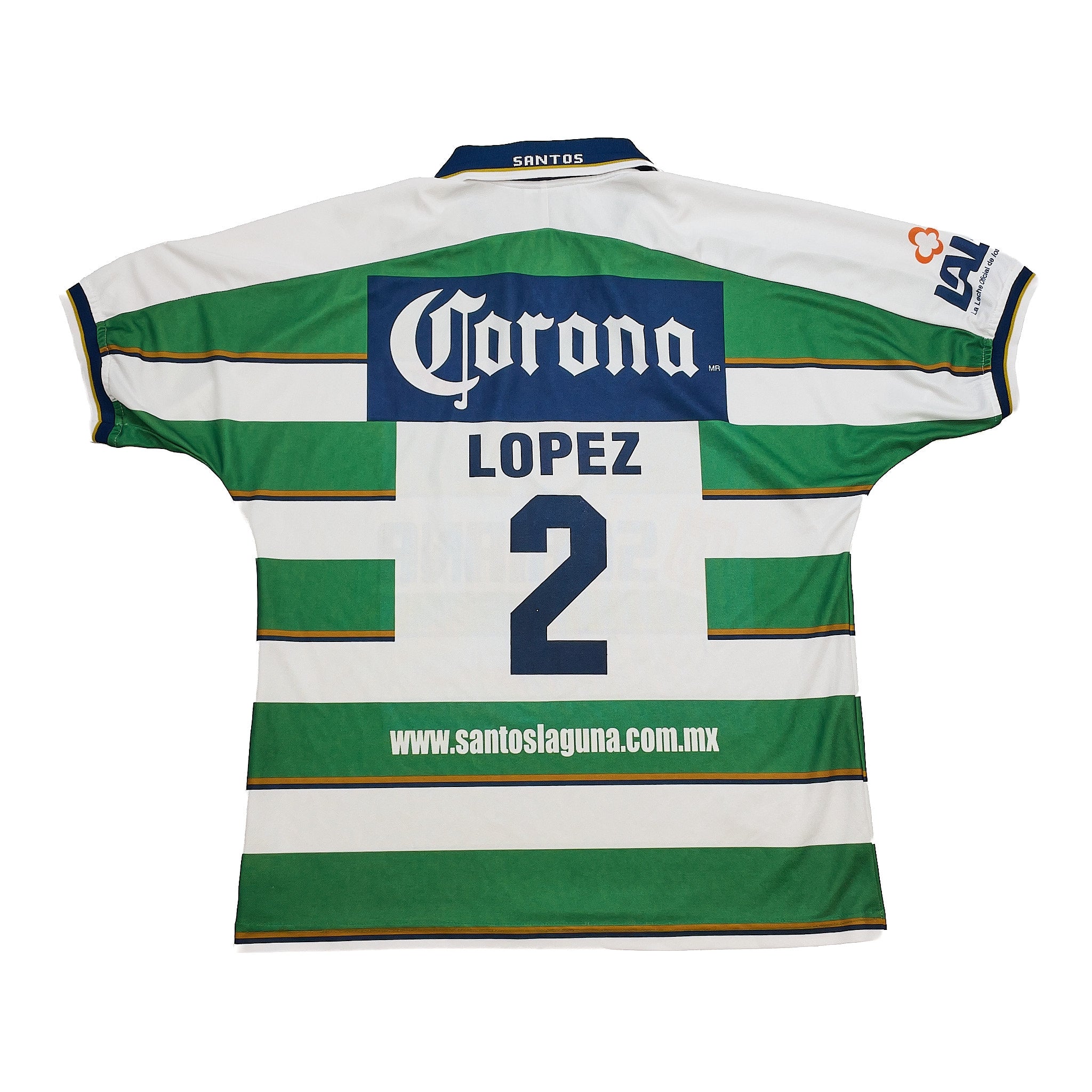 2000/01 SANTOS LAGUNA LOPEZ #2 *MATCH ISSUE+SIGNED* HOME SHIRT (XL) CORONA SPORT