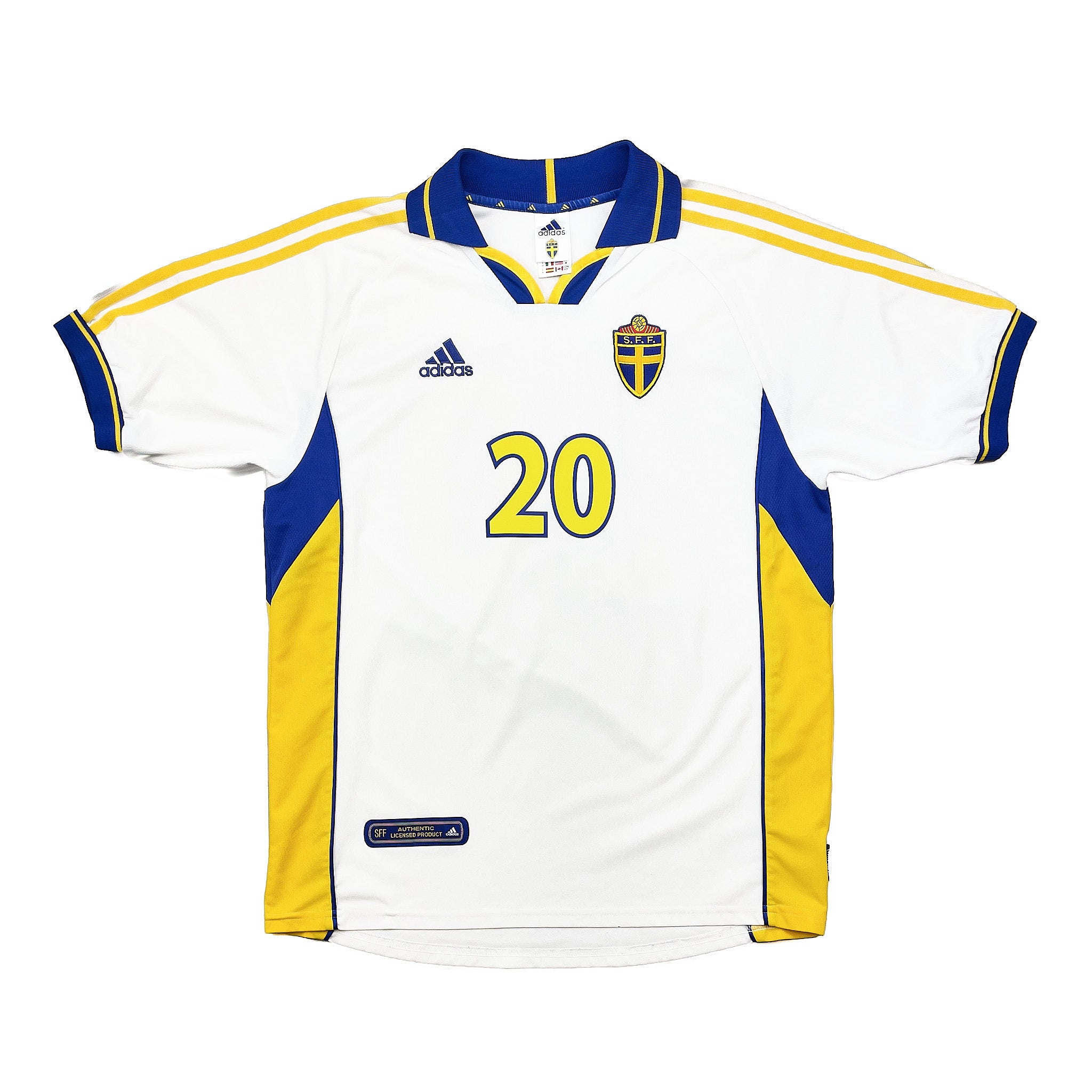 Shop 2000/02 SWEDEN LARSSON #20 AWAY SHIRT (M) ADIDAS, classic football shirts, vintage football shirts & retro soccer jerseys at Cult Kits