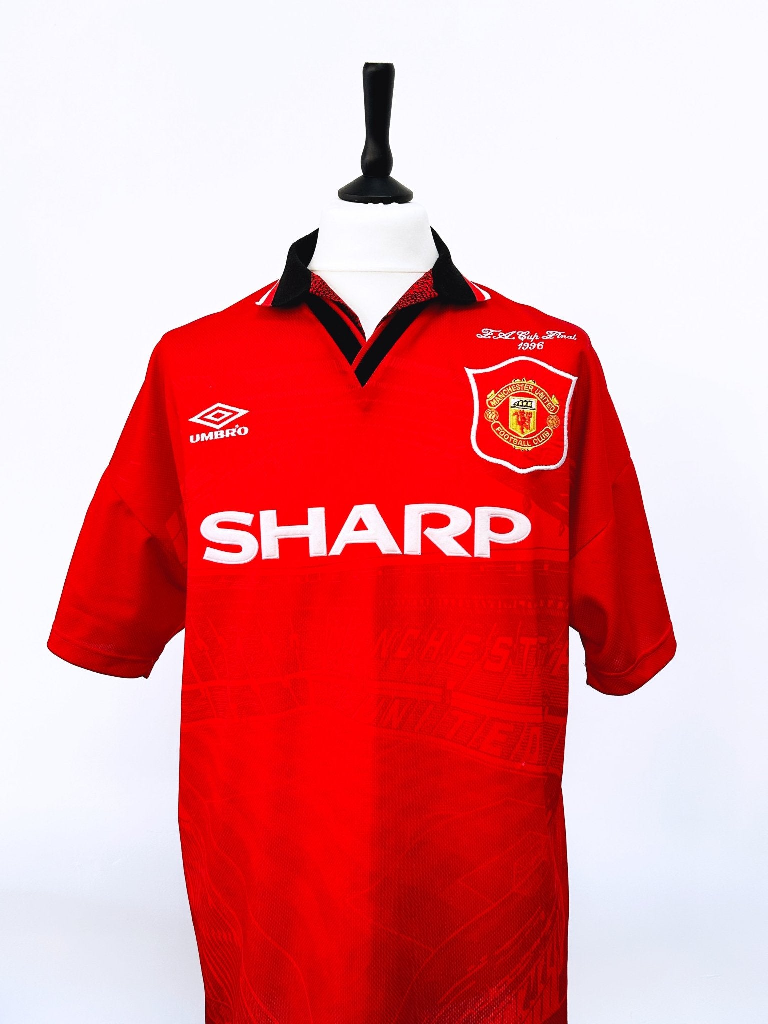 1996 MANCHESTER UNITED BECKHAM #24 *MATCH PREPARED *FA CUP FINAL* HOME SHIRT (XL) UMBRO