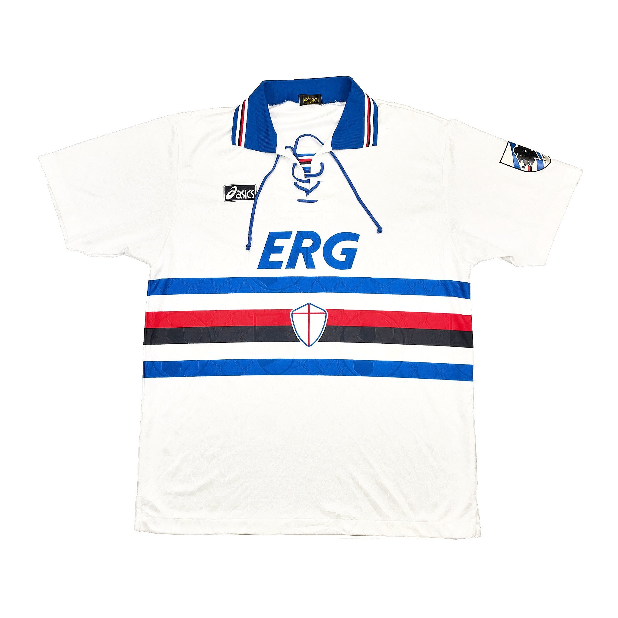 Shop 1994/95 SAMPDORIA AWAY SHIRT (L) ASICS, classic football shirts, vintage football shirts & retro soccer jerseys at Cult Kits