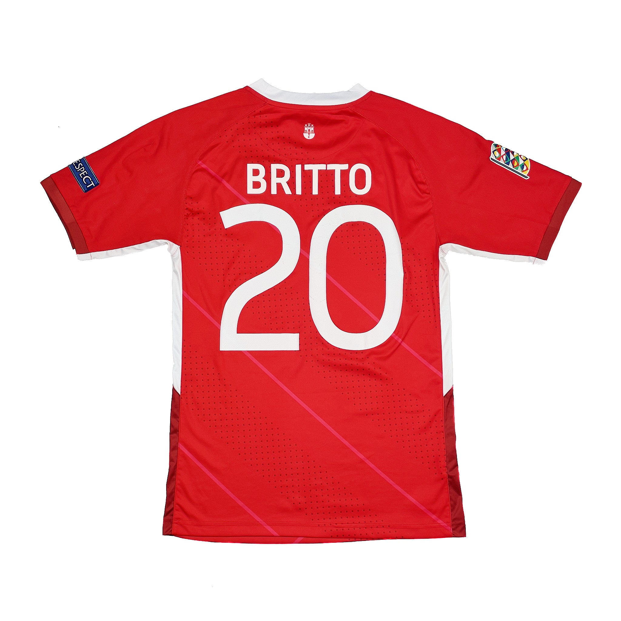 2018/20 GIBRALTAR BRITTO #20 *MATCH ISSUE* HOME SHIRT (M) LEGEA