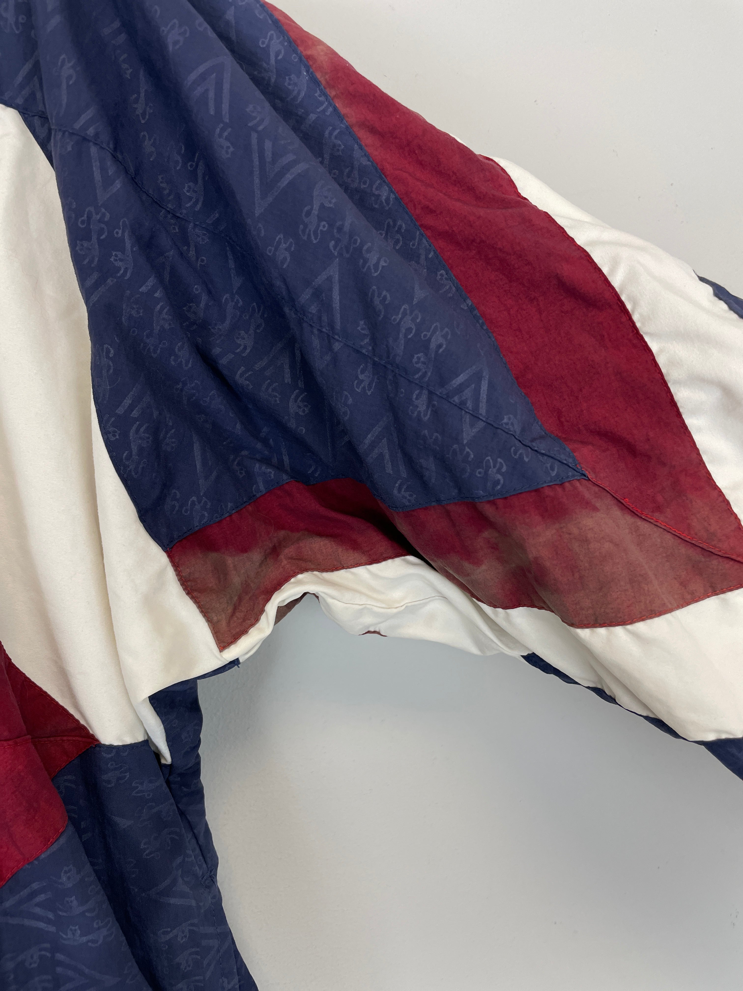 CONDITION - Good - some discolouration to both sleeves, patches of light fade to red parts of the front, material feel is excellent (see photos)