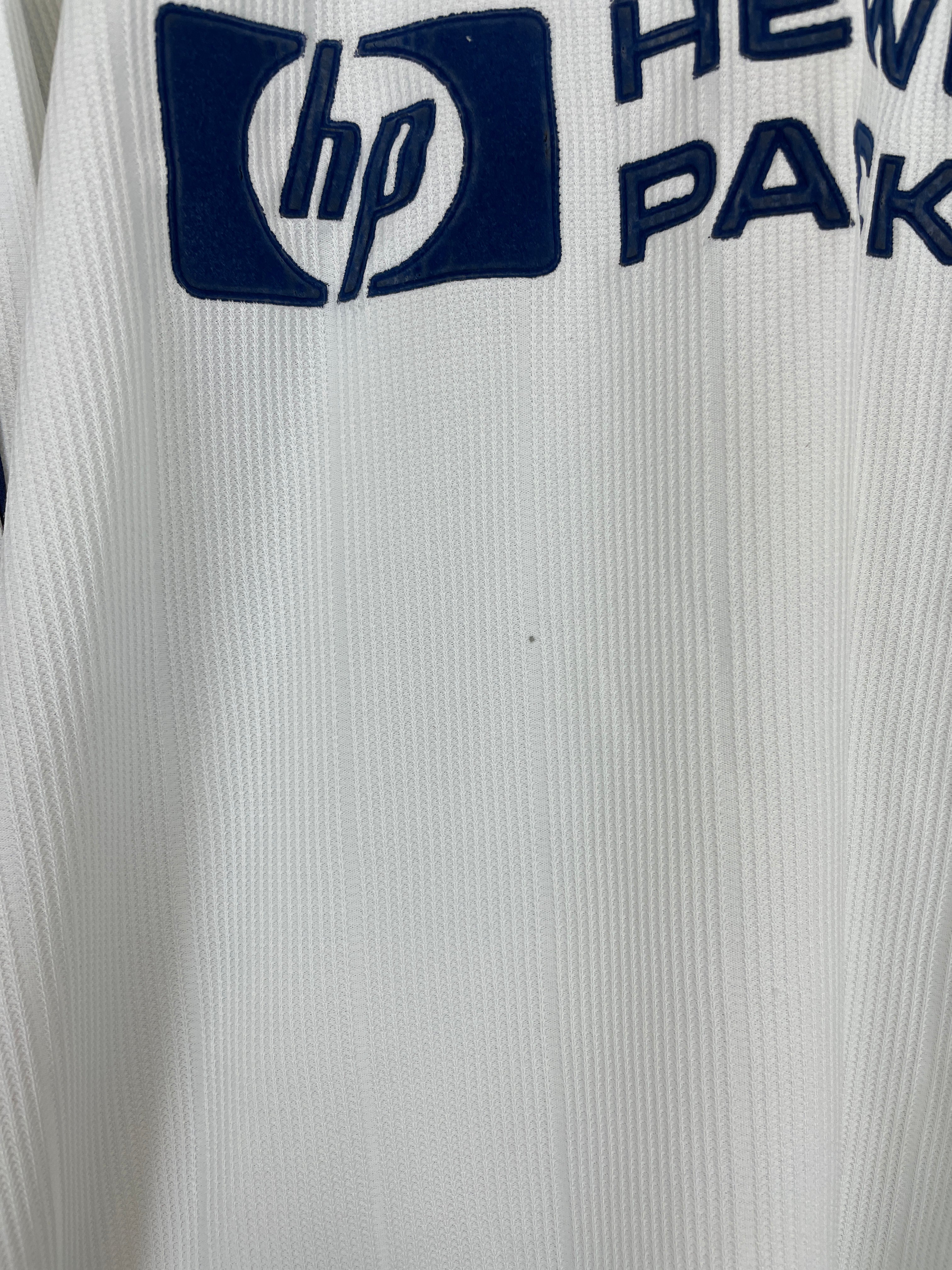 Many vintage football shirts feature printed sponsor logos, badges, or graphics that are prone to damage: