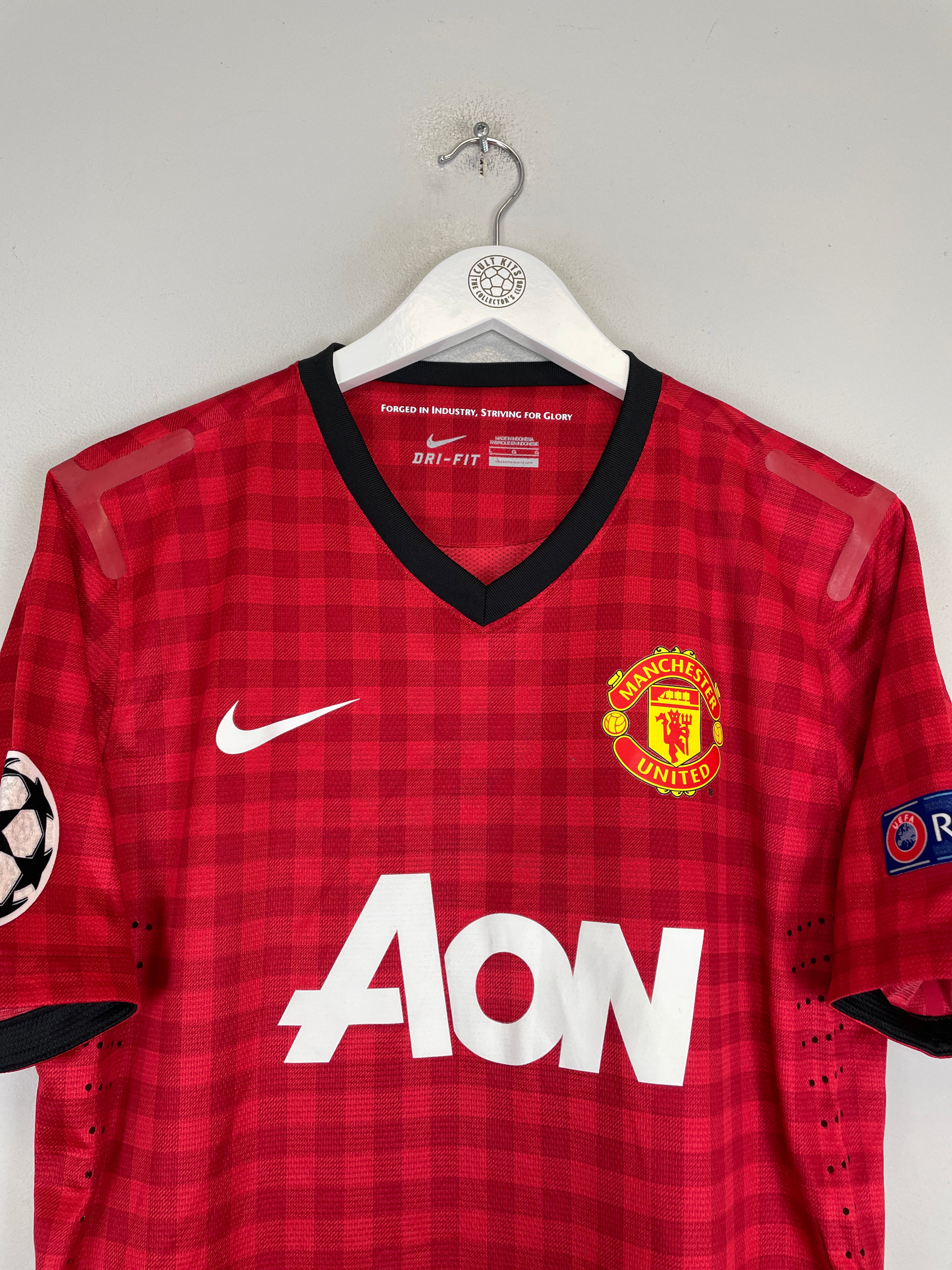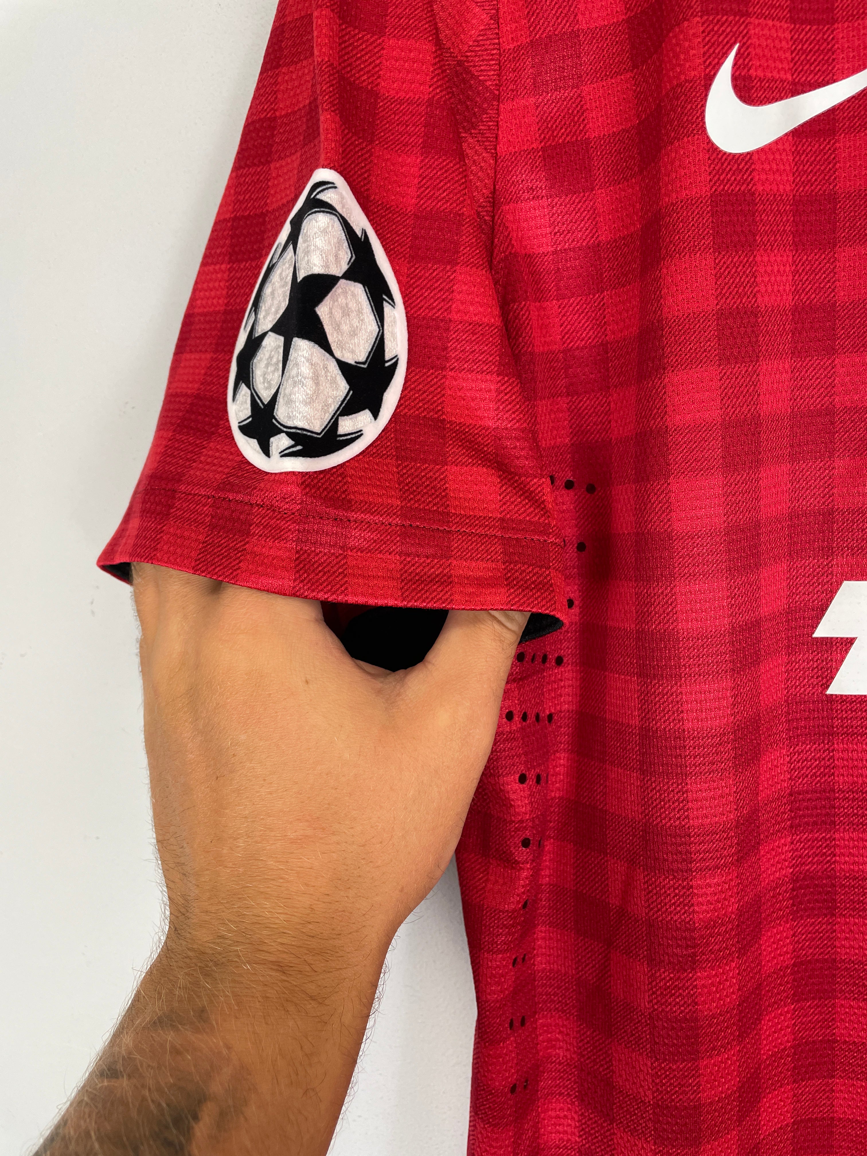 Match Issue Features: Correct player size name and number print and Champions League patch to the right sleeve, printed badge, manufacturer logo and wash label, breathable side panels, Sourced from a former member of staff at Manchester United and comes with a Cult Kits COA.