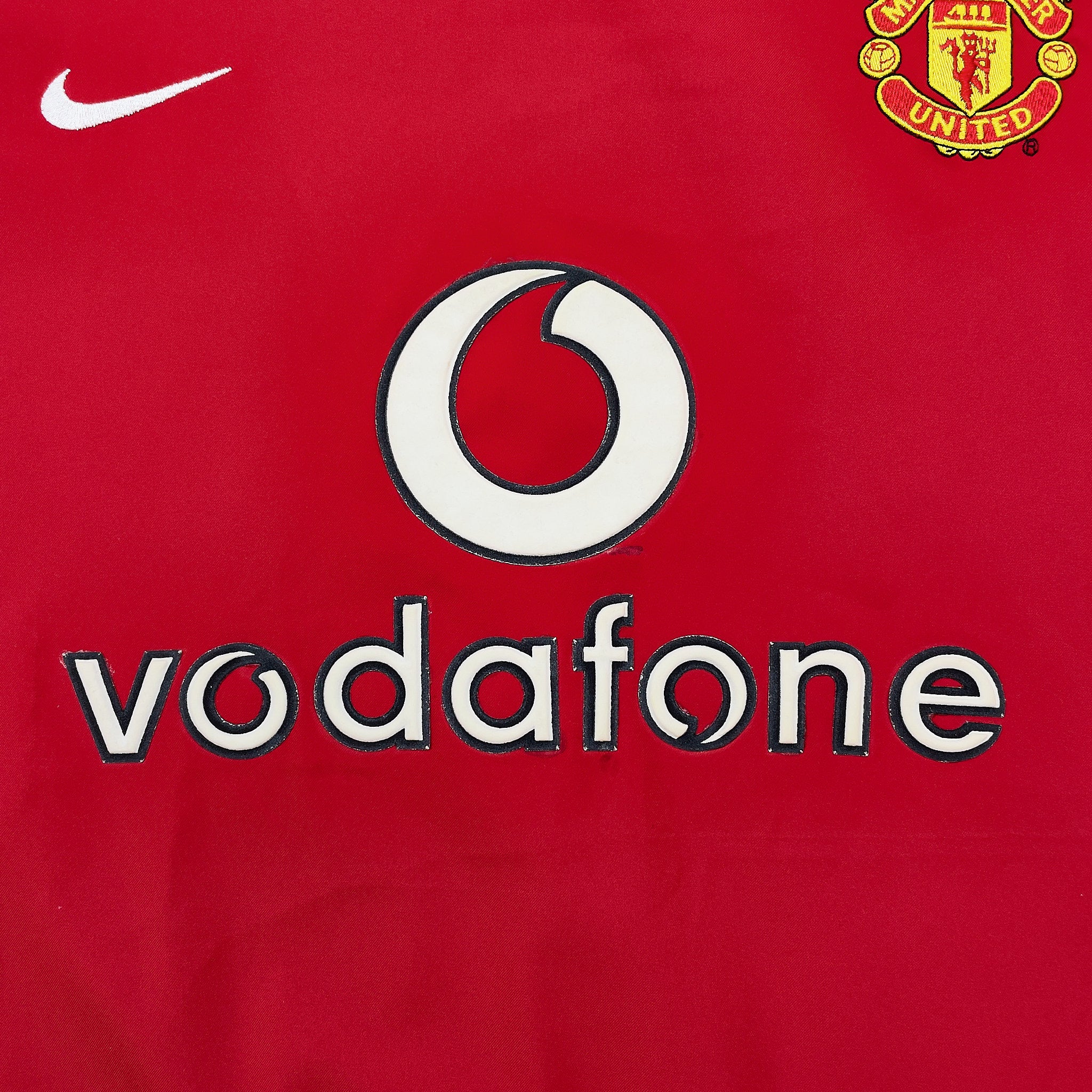 Many vintage football shirts feature printed sponsor logos, badges, or graphics that are prone to damage: