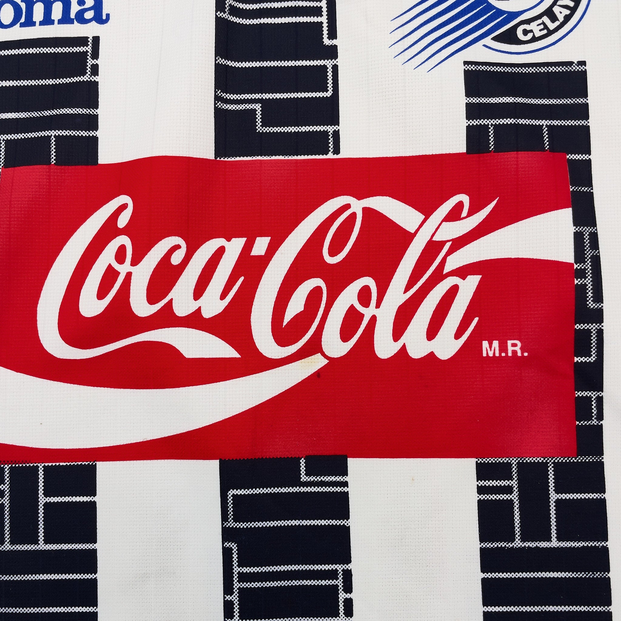 Many vintage football shirts feature printed sponsor logos, badges, or graphics that are prone to damage: