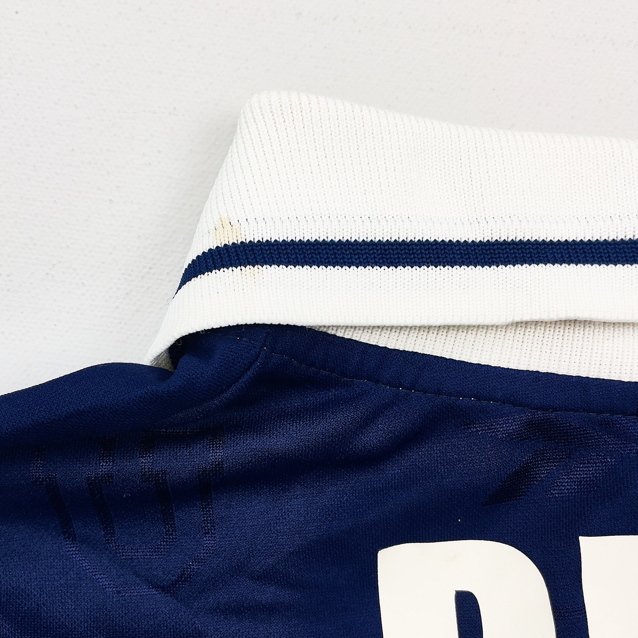 Many vintage football shirts feature printed sponsor logos, badges, or graphics that are prone to damage: