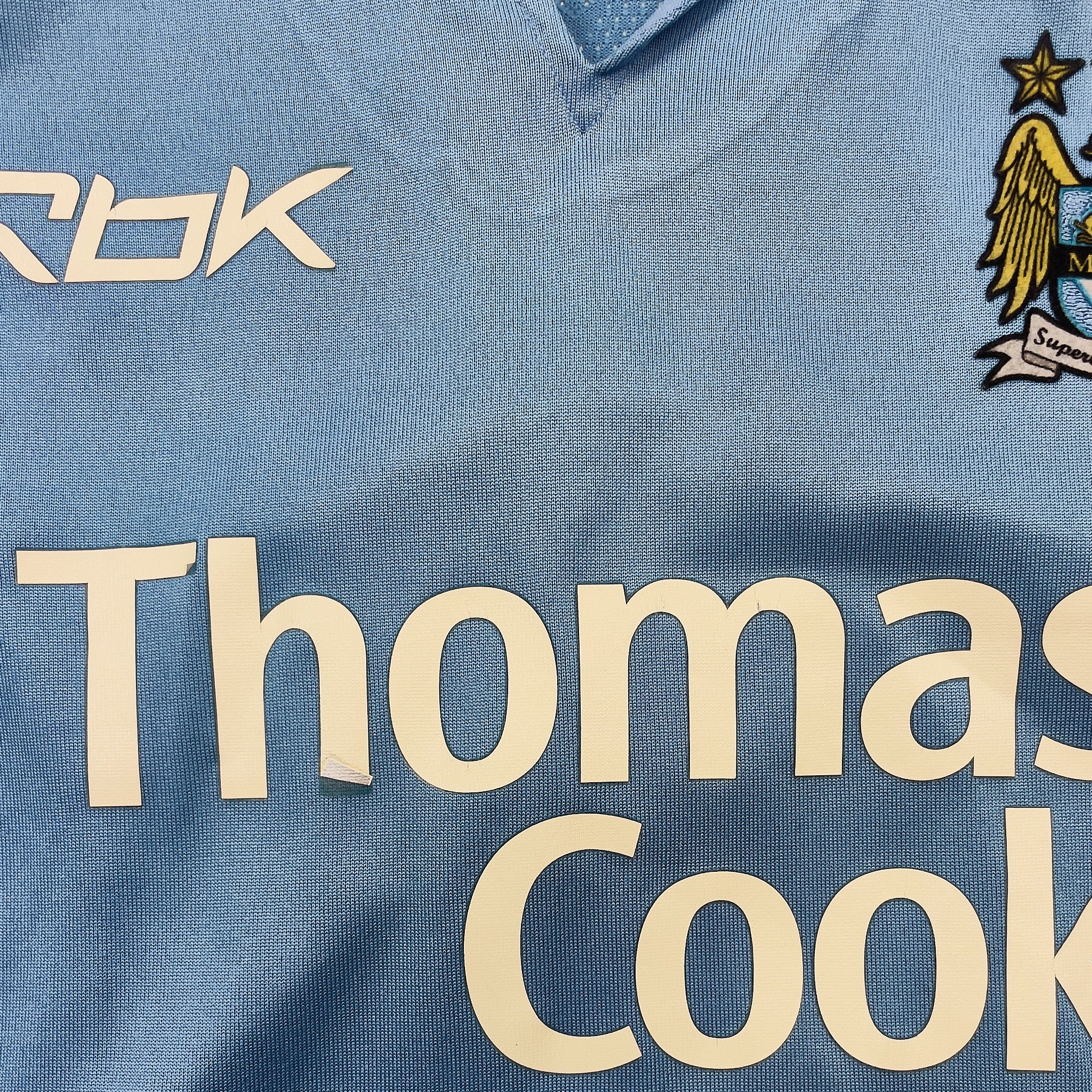 Many vintage football shirts feature printed sponsor logos, badges, or graphics that are prone to damage: